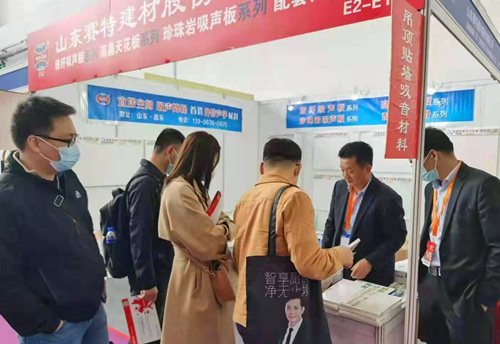 作為深耕天花板行業(yè)二十七載的山東賽特建材股份有限公司,緊抓后疫情時(shí)代經(jīng)濟(jì)復(fù)蘇的關(guān)鍵時(shí)刻重磅出擊,參展商品涵蓋高晶天花板系列、碳晶天花板系列、藻鈣天花板系列、異形高強(qiáng)天花板系列、穿孔吸聲天花板系列、吊頂專用玻纖吸聲板系列、機(jī)房專用玻纖吸聲板系列、復(fù)合型玻纖吸聲板系列、珍珠巖裝飾吸音板系列、水泥珍珠巖吸音板系列、高強(qiáng)鋁合金龍骨系列等四大類別十大系列,為“建材人”呈現(xiàn)一場(chǎng)專業(yè)化、多元化的行業(yè)盛宴。